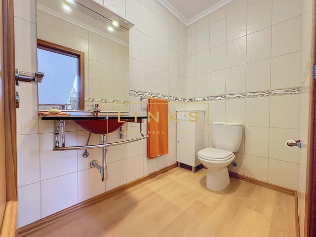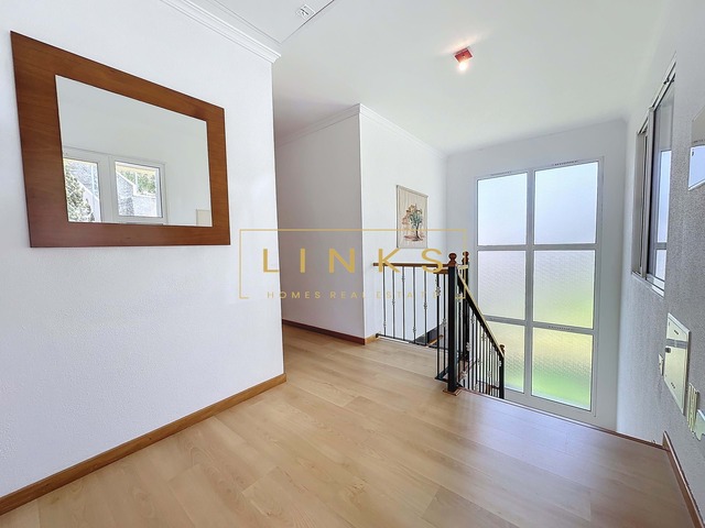 É composta por três quartos, duas casas de banho e outra adicional para uso comum, garantindo comodidade aos moradores. Os seus quartos são bem iluminados e ventilados, com amplo espaço de armazenamento para atender às necessidades práticas de um estilo de vida moderno. A espaçosa sala de estar funciona como o coração da casa, proporcionando um ambiente repleto de iluminação natural. Por ter piso laminado, a casa ganha um toque de elegância. A cozinha tem configuração ampla e está equipada com eletrodomésticos AEG e Samsung.