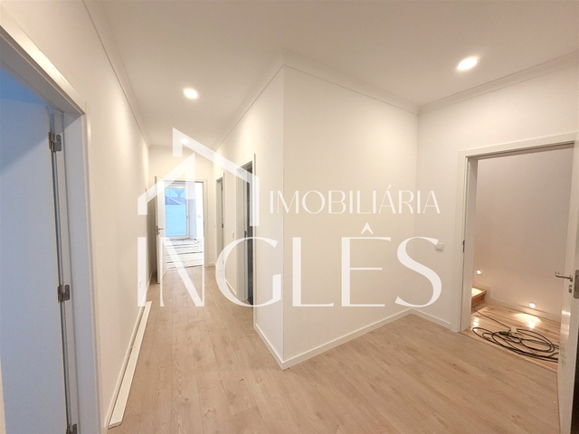 Através do hall, acede-se ao piso superior por elegantes escadas, onde se encontram os confortáveis quartos e as respetivas casas de banho, garantindo privacidade e bem-estar. No corredor, existe ainda acesso ao sótão, oferecendo espaço adicional de arrumação ou potencial de aproveitamento.