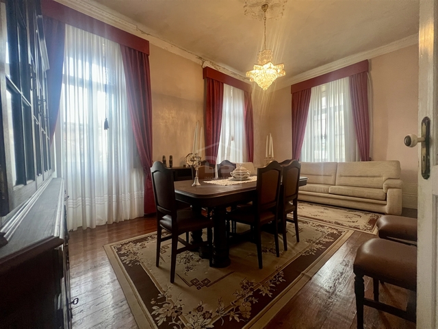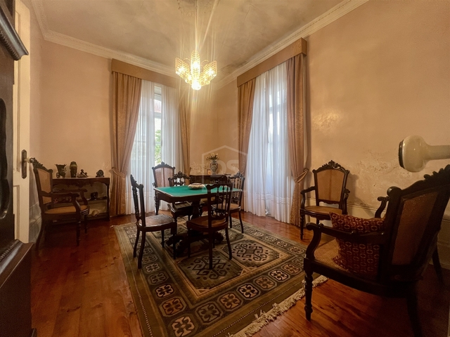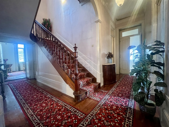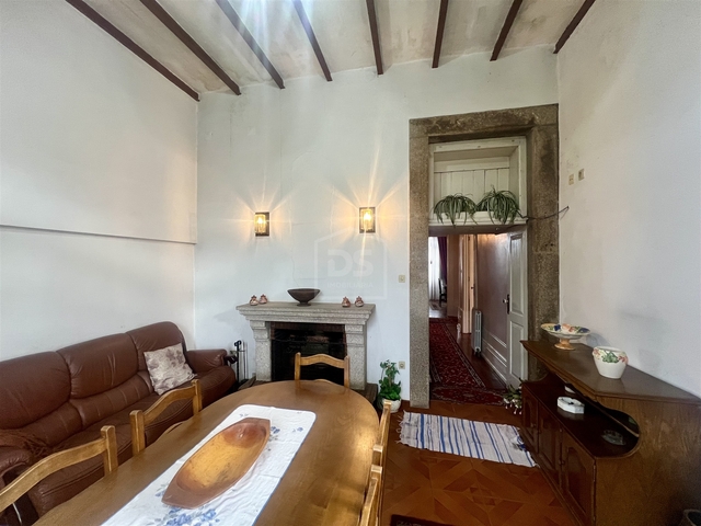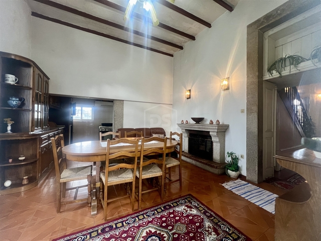 Composta por três pisos (cave, rés-do-chão e primeiro andar), a casa preserva traços arquitetônicos clássicos que remetem a outra era. Rodeada por um terreno generoso de 2.500 m², a propriedade oferece tranquilidade e contato direto com a natureza. Conta ainda com água própria, uma valiosa característica que enriquece a autonomia e o encanto do local.