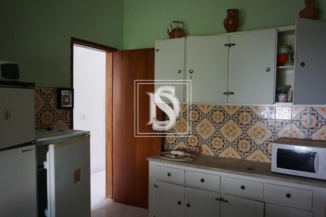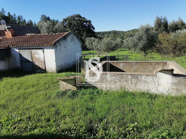 No exterior tem garagem e terreno agrícola com a área aproximada de 2000 m2, com poço, tanque, anexo, olival e variadas árvores de fruto.