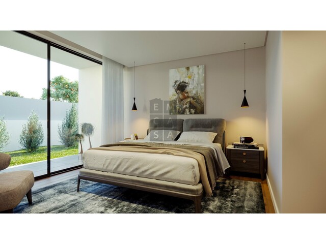 No exterior dispõe de belíssima zona ajardinada com ótima exposição solar.