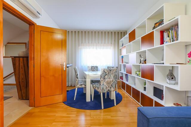 MORADIA T4, individual, inserido num lote de terreno com 570 m², com uma belíssima área de lazer com PISCINA. Está localizado numa zona habitacional muito tranquila, com vasta área de jardim, parque infantil e zona estacionamentos. De destacar a sua excelente qualidade de construção e os seus acabamentos de gama alta. Dispõe de fáceis acessos e uma excelente exposição Solar. R/ CHíO: - Garagem fechada para 5 carros, com zona de balcão equipado com fogão, forno e banca (preparado para festas) - 1 WC - Espaço exterior 1º PISO: - Hall de entrada - Belíssima sala de estar comum com uma LAREIRA de 2 faces (virada para a cozinha e a sala) e, ainda, uma varanda com vistas desafogadas - Cozinha mobilada, com ilha e totalmente EQUIPADA e com dispensa - WC - Quarto / Sala de Jogos 2º PISO: - 2 quartos com roupeiros embutidos e acesso Á Varanda - 1 SUÍTE com CLOSET OUTRAS CARACTERÍSTICAS: - Excelentes áreas - Ar condicionado - Isolamento térmico e acústico - Muita luz natural - Painéis Solares - Alpendre junto Á cozinha - Belíssima zona exterior com PISCINA SURPREENDA-SE, VISITE A SUA NOVA MORADIA! Não perca esta oportunidade! AGENDE JÁ A SUA VISITA. *Ao adquirir um imóvel a um profissional da rede Decisões e Soluções, uma das maiores redes nacionais, está também a usufruir de um serviço 360º. Tratamos de todo o processo de financiamento e seguros, com as melhores condições que o mercado lhe pode oferecer. Todos estes serviços ser-lhe-ão prestados sem qualquer custo adicional. Conheça as melhores propostas que temos para si!