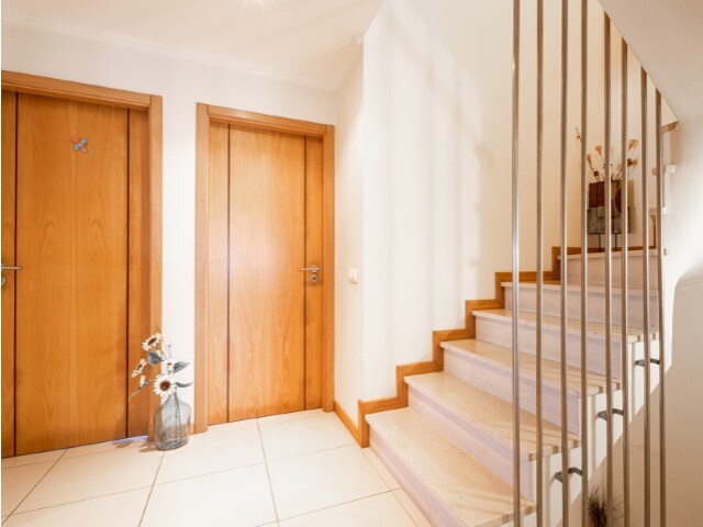 A moradia no rés do chão é composta por uma funcional cozinha, com zona de refeições, com acesso a uma varanda. A sala virada ao jardim tem duas áreas distintas, sala de estar e sala e jantar. Dois quartos virados a nascente , um dos quais suite, com um varanda em comum para que possa receber o dia da melhor maneira, o outro quarto virado para o jardim usufrui de sol toda a tarde. Tem mais uma casa de banho completa.