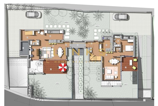 A cozinha moderna totalmente equipada destaca-se pelo seu design simples e eficiente, pensada para responder às exigências do quotidiano, aliando estética e praticidade. Como complemento, a moradia conta com uma lavandaria independente, espaço essencial para uma melhor organização doméstica.