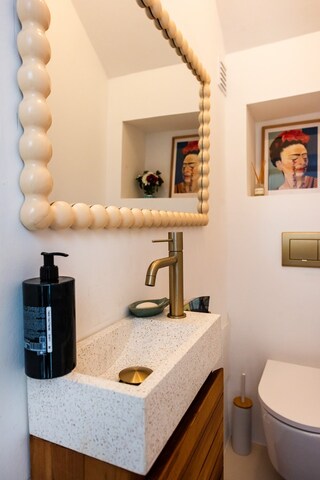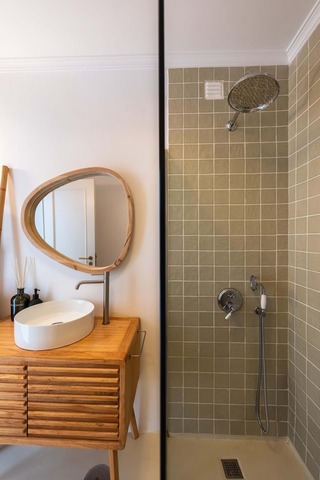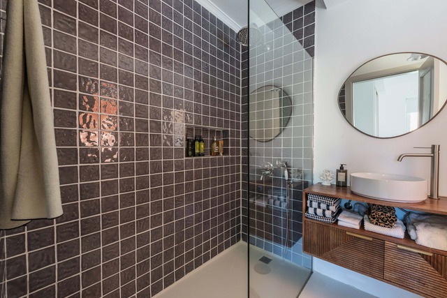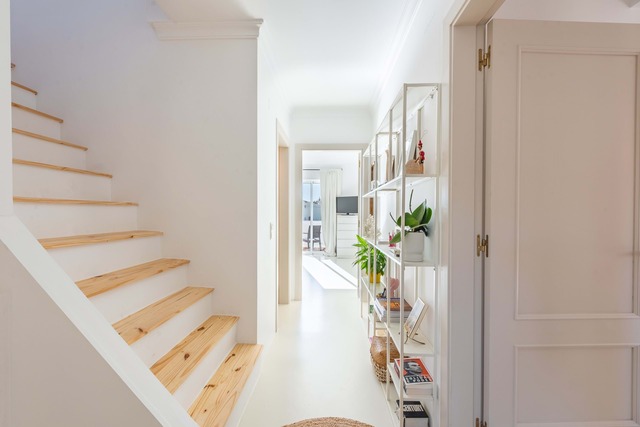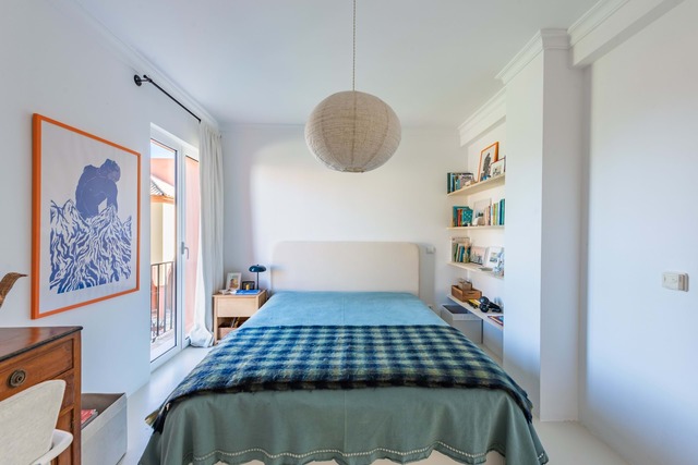 No 1º andar temos 3 quartos, um deles com casa de banho privativa e uma comum, muito amplos, e ainda um terraço virado a sul.