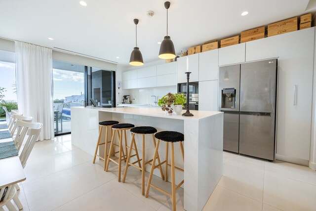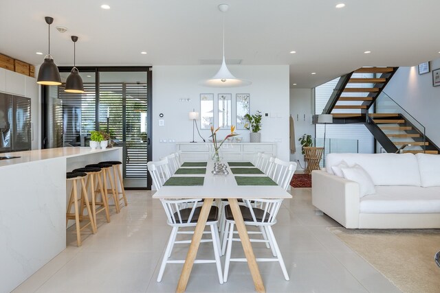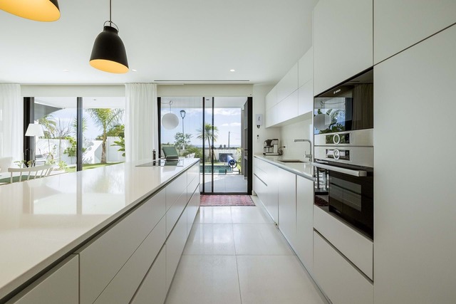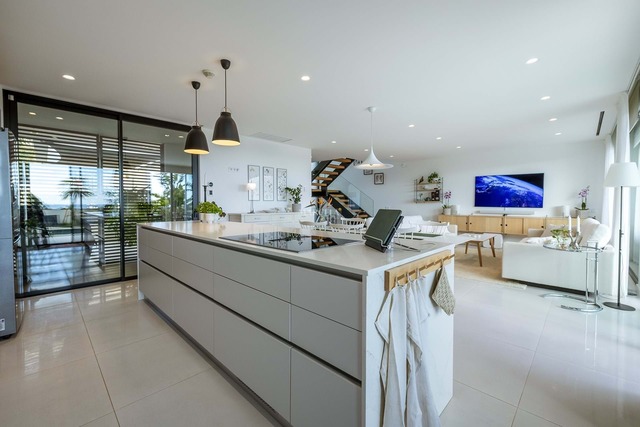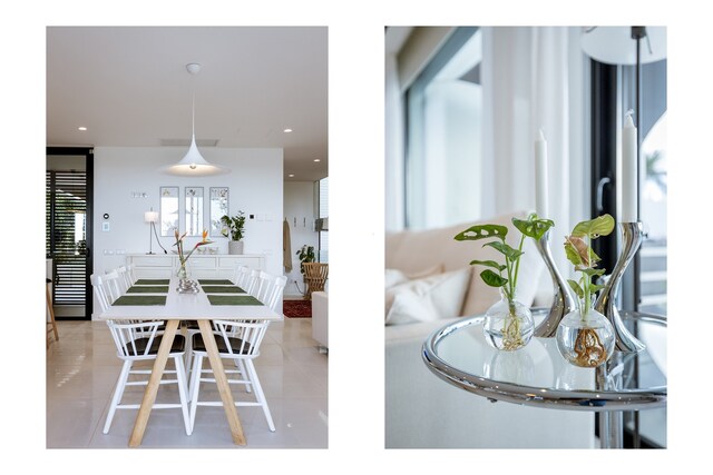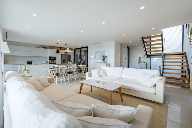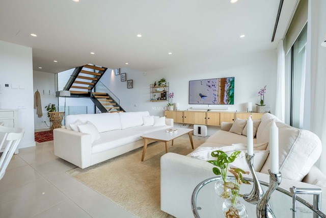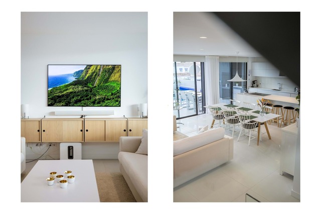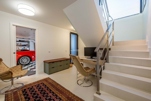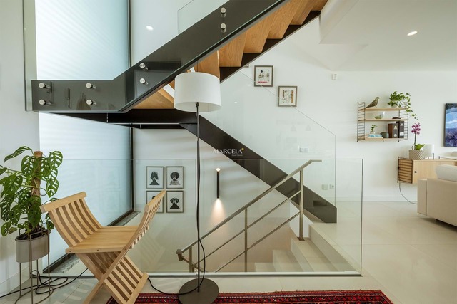 Sala de estar, sala de jantar e cozinha: Espaços em plano aberto, perfeitos para reuniões familiares e entretenimento, com uma cozinha moderna e funcional equipada com eletrodomésticos de alta qualidade. O rés-do-chão tem acesso a 2 terraços virados a sul e a norte.