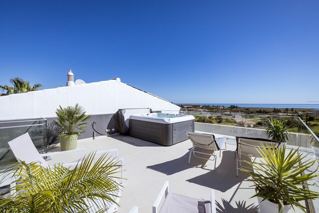 Um terraço exclusivo no telhado, com jacuzzi e vistas fantásticas para o mar e para a cidade o local perfeito para relaxar ao pôr do sol ou tomar o café da manhã.
