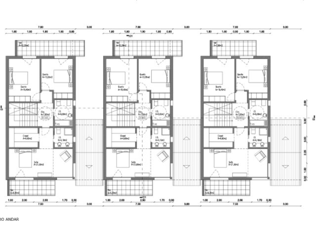 ** 3 quartos (2 quartos com roupeiro e varanda comum, 1 suite com casa de banho privativa, closet e varanda)