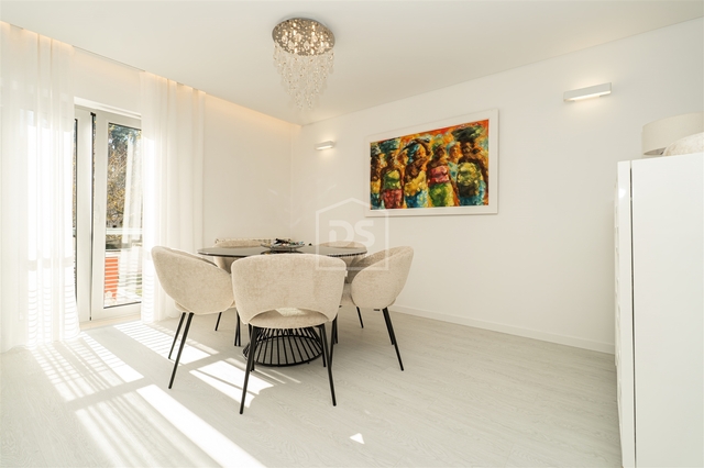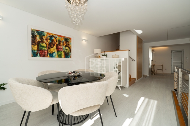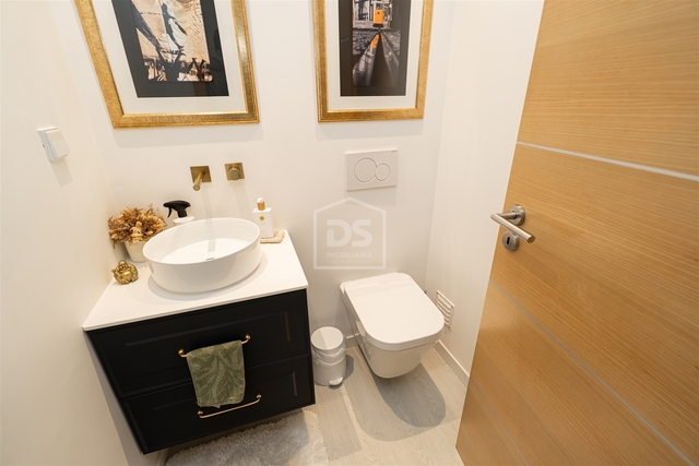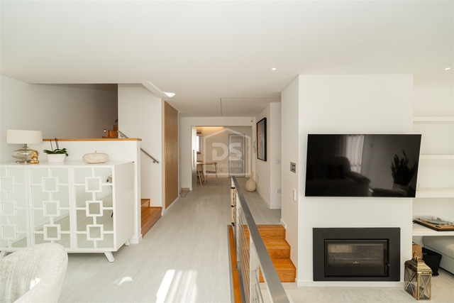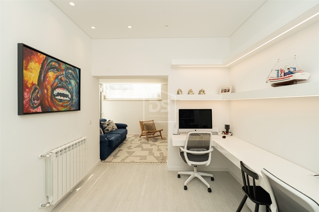 • No piso principal, uma sala ampla e luminosa, cozinha moderna, casa de banho de serviço e ligação direta ao exterior.