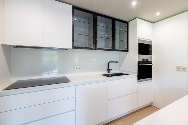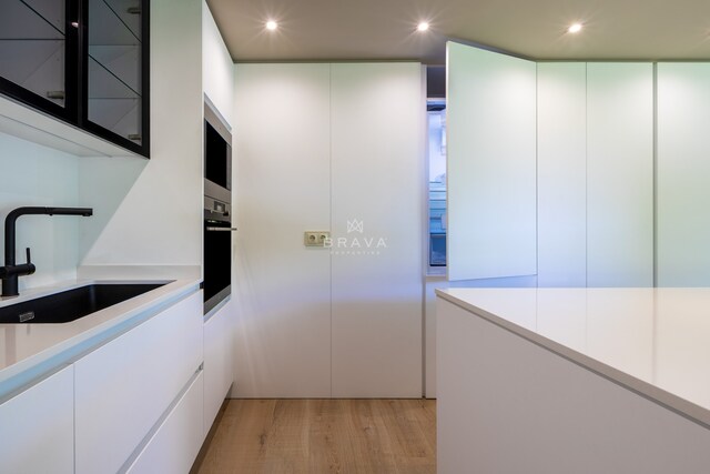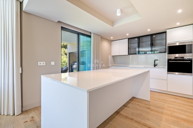 Cozinha equipada com eletrodomésticos, incluindo cave de vinhos