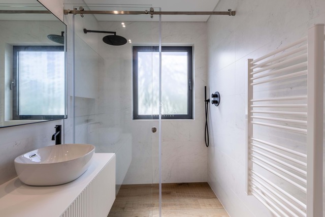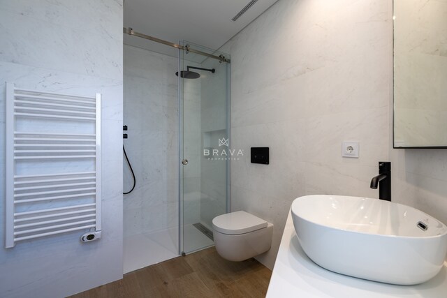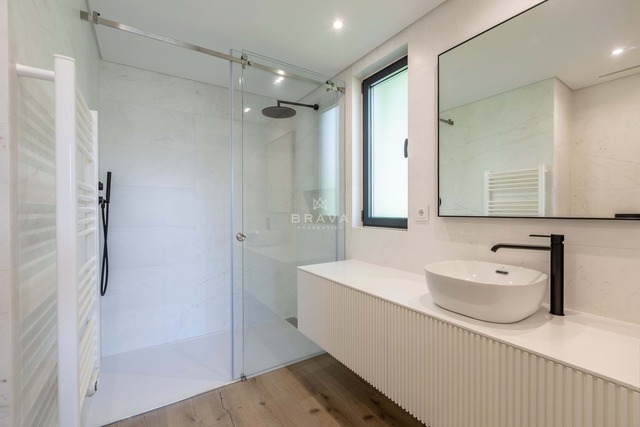 Quatro suites com base de duche, toalheiros elétricos e roupeiros embutidos