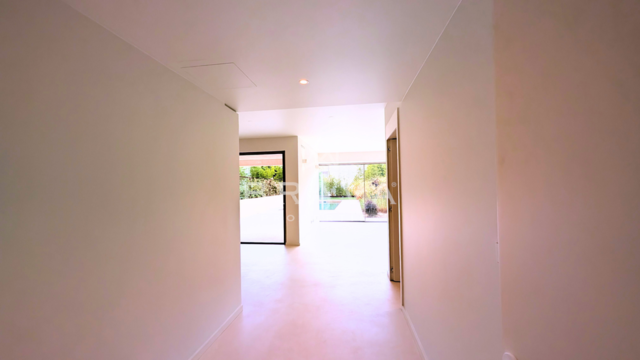 Sala de estar e jantar com acesso direto ao jardim e zona da piscina