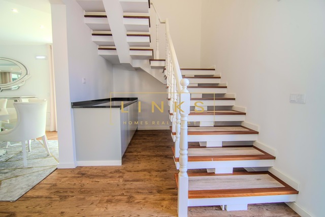 No rés-do-chão, encontra uma ampla sala de estar e jantar em open space, em harmonia com uma cozinha moderna totalmente equipada, criando um ambiente perfeito para momentos de convívio e partilha.