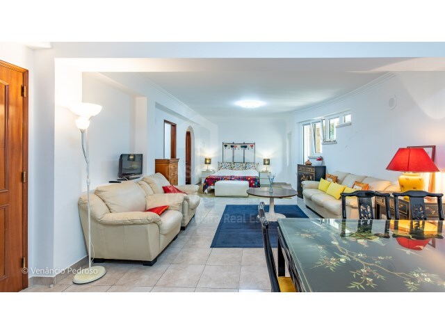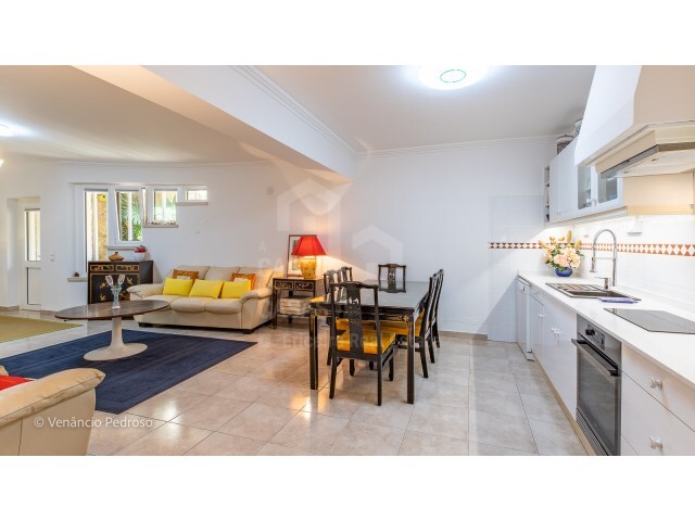 O exterior oferece um logradouro com zona de churrasqueira e telheiro, jardim cuidado e um pequeno lago com peixes, proporcionando um espaço ideal para receber convidados com conforto e elegância.