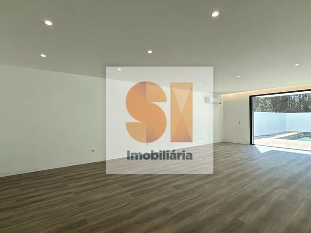 No piso principal desenvolve-se a zona social, composta por uma ampla sala em open space com a cozinha, beneficiando de grandes vãos envidraçados que garantem excelente luz natural e ligação direta ao terraço e à zona da piscina. A cozinha apresenta um design moderno, com ilha central e muita capacidade de arrumação. Neste piso existe ainda uma casa de banho de serviço e zonas de circulação amplas e bem organizadas.