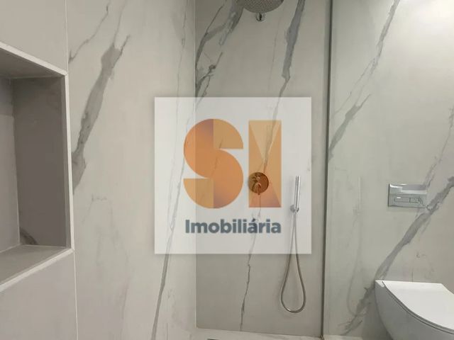 - Casas de banho com revestimentos cerâmicos de grande formato e bases de duche ao nível do pavimento