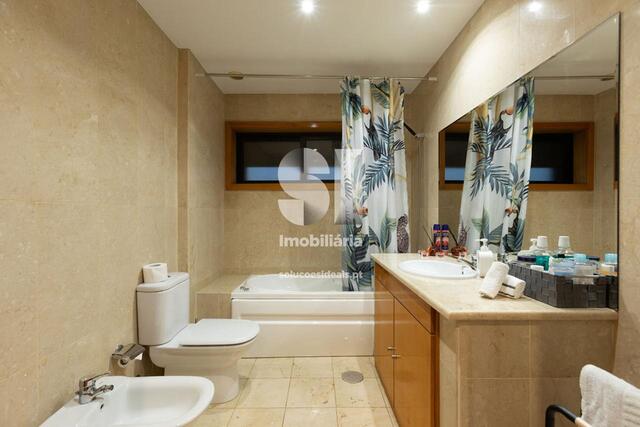 Originalmente T3, o imóvel foi convertido em T2, privilegiando o conforto e a amplitude. A atual suite principal é espaçosa, com casa de banho privativa e um closete generoso, proporcionando um verdadeiro refúgio de descanso e privacidade.