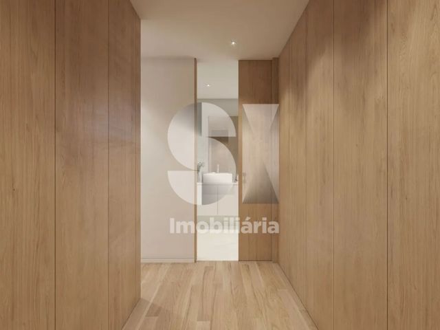 -Roupeiros de Carvalho até ao teto forrados a linho no interior ou equivalente.