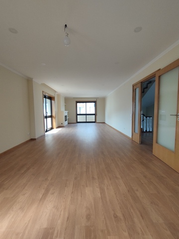 A moradia é composta por cave com lugar de garagem para 2 carros grandes, tem também um grande salão com lareira e WC. Tem acesso também por dentro a casa e à parte externa das traseiras.