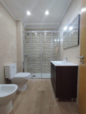 No R/C tem um quarto, hall de entrada, uma casa de banho, cozinha completamente equipada e uma sala com mais de 40m2 com varanda e acesso a um pátio que dá para a zona do pátio e jardim.