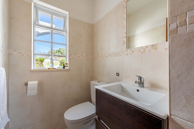 Com piso tradicional de Santa Catarina por toda parte, a moradia tem uma bela elegância rústica. A área de estar principal tem um grande fluxo desde o lounge aconchegante com lareira até a cozinha e a área de jantar. A luz natural inunda o nível superior com portas duplas que dão acesso direto ao terraço coberto com vista total para o mar da esquerda para a direita. Há também uma despensa e banheiro para sua conveniência.