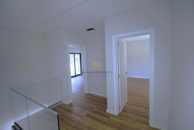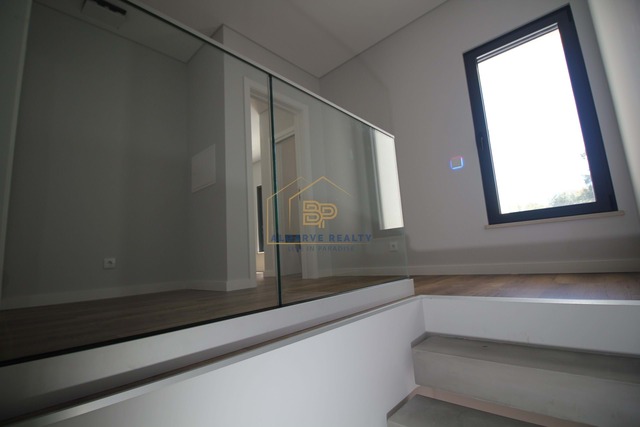 Piso 1 com acesso através de imponente escadaria com degraus flutuantes em betão, encontramos dois quartos en-suíte. Uma suíte com roupeiro embutido, a outra suíte com roupeiro embutido e varanda privativa.