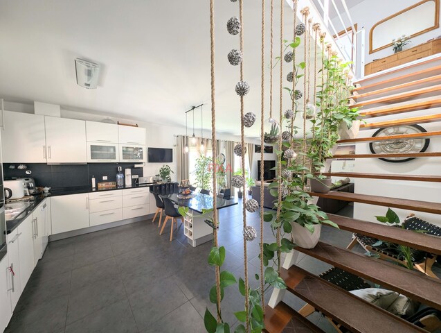 Com uma suíte e cinco quartos, 4 deles equipados com armários embutidos, esta casa foi pensada para acolher e facilitar a vida familiar. Conta com 3 casas de banho completas, uma cozinha e sala em open space onde os jantares de fim de semana ganham vida e uma piscina de água salgada que é o centro dos dias de verão. A sauna na garagem transforma os finais de tarde em momentos de puro bem-estar.