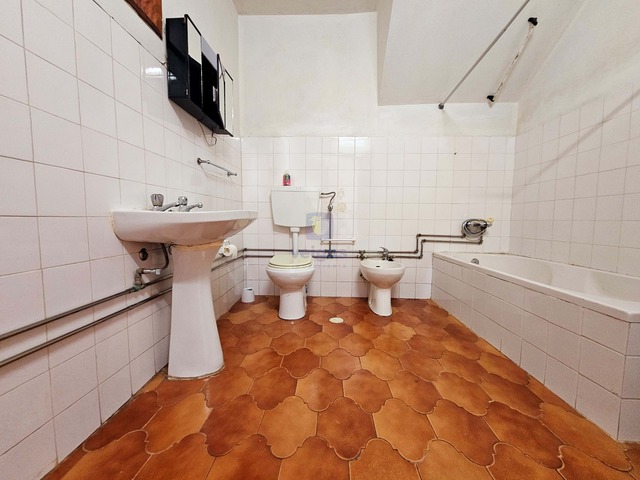 Agradável casa com áreas simpáticas, no piso do rés do chăo com uma sala de 22m2, casa de banho de 7m2, cozinha com zona de refeiçőes com uma área total de 33m2 e arrumo de văo de escadas.