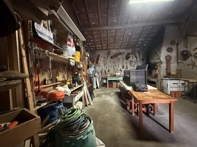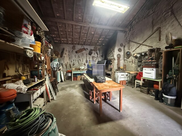 Moradia de 56m² de área, que em tempos foi casa de família, originalmente composta por cozinha, sala e quarto. Atualmente encontra-se em open space, sem paredes interiores, sendo usada como oficina e armazém para arrumação de ferramentas, o que oferece uma excelente base para um novo projeto.
