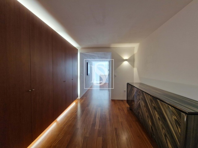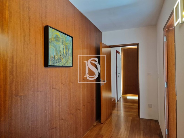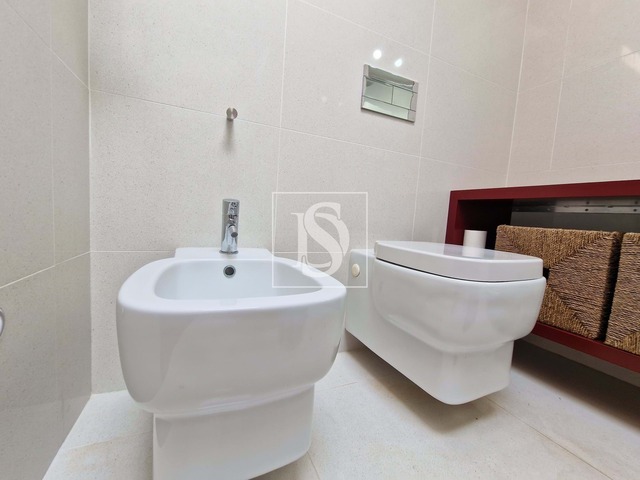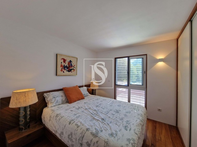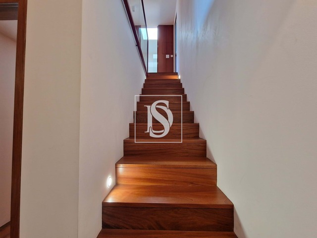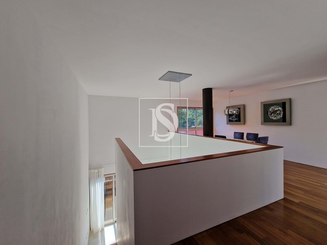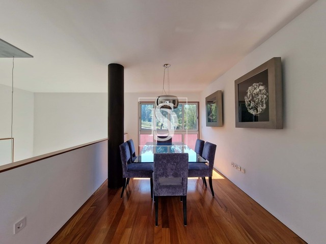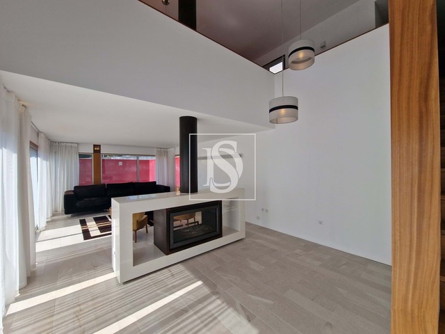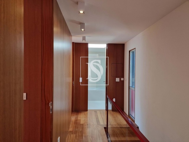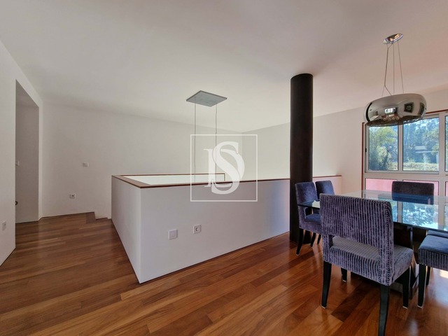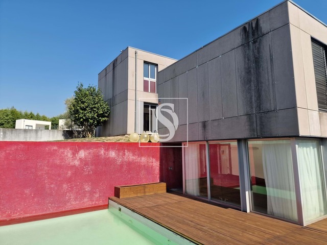 A moradia de traça moderna e com um jardim e piscina com bastante privacidade, é distribuída por 3 pisos, todos com funções distintas e com espaços separados, o que torna a moradia funcional, confortável e elegante.
