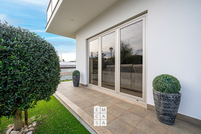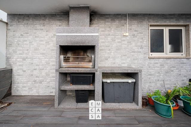 O exterior é bastante agradável, com zona verde e área de churrasqueira, ideal para momentos de lazer em família ou com amigos.