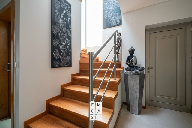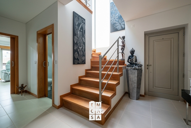O piso superior dispõe de uma suíte, dois quartos e uma casa de banho de apoio aos quartos.