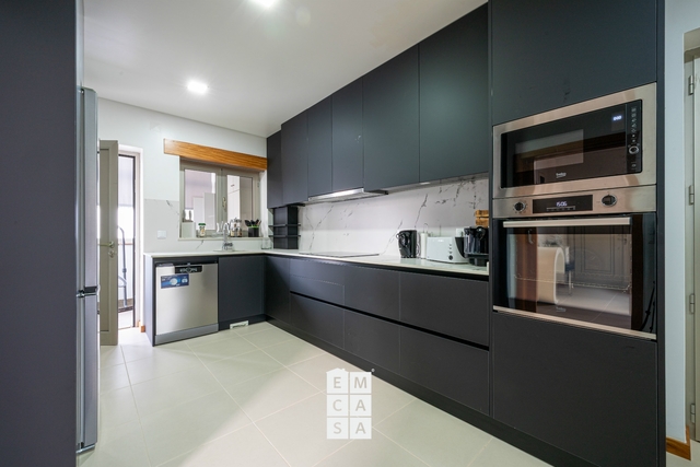 No piso inferior, encontra-se uma cozinha totalmente nova, a estrear, sala de estar e jantar com bastante luz, um escritório e uma casa de banho de serviço.