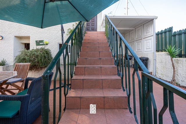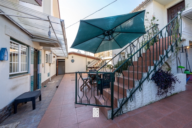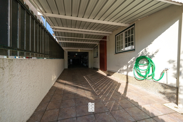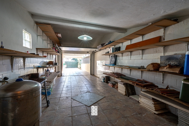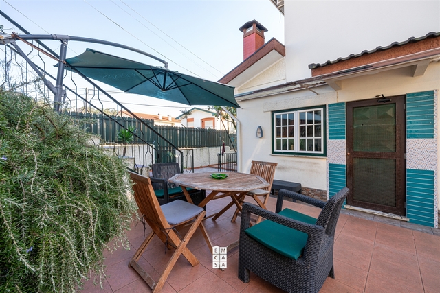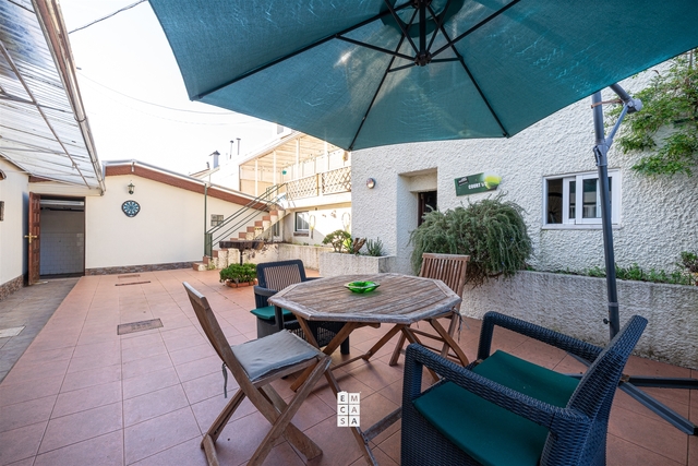No exterior, a moradia dispõe de um excelente espaço de lazer, ideal para convívios ao ar livre, um anexo com potencial para várias utilizações, e uma garagem fechada para dois carros, com área adicional de arrumos.