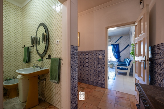 Neste piso encontram-se ainda dois quartos, uma casa de banho completa e uma casa de banho de serviço, garantindo total comodidade no dia a dia.