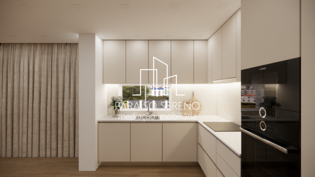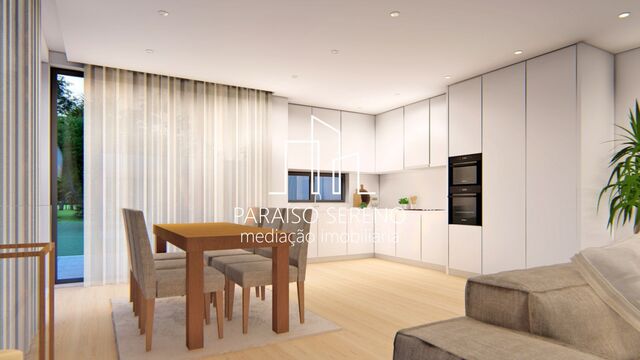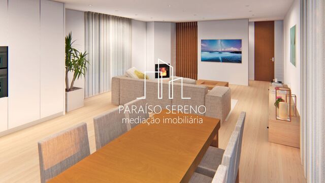 Cozinha e sala em plano open space, de salientar o recuperador de calor, e os acabamentos contemporâneos, a cozinha conta com móveis lacados de elevada qualidade, totalmente equipada, dispõe de placa, forno, exaustor, micro-ondas, frigorífico e máquina de lavar loiça, assegurando total funcionalidade no dia a dia.