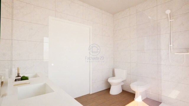 O imóvel será composto por três pisos e contará com uma área de implantação de 114 m², perfazendo uma área total de construção de 342 m². A habitação dispõe ainda de um anexo com 24 m², ideal para apoio à residência, podendo servir como espaço de arrumos, lavandaria ou outra finalidade de apoio funcional.