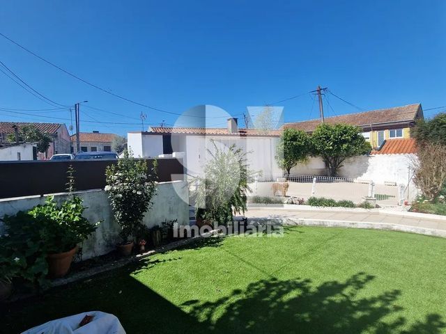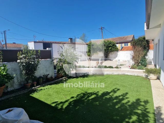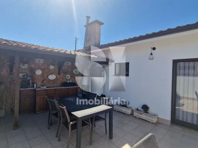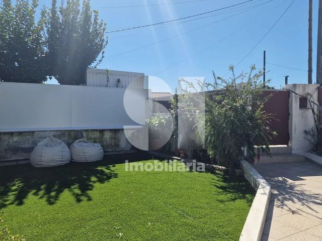 No exterior, desfrute de um agradável jardim, complementado com churrasqueira e banca de apoio, perfeito para momentos de convívio ao ar livre.