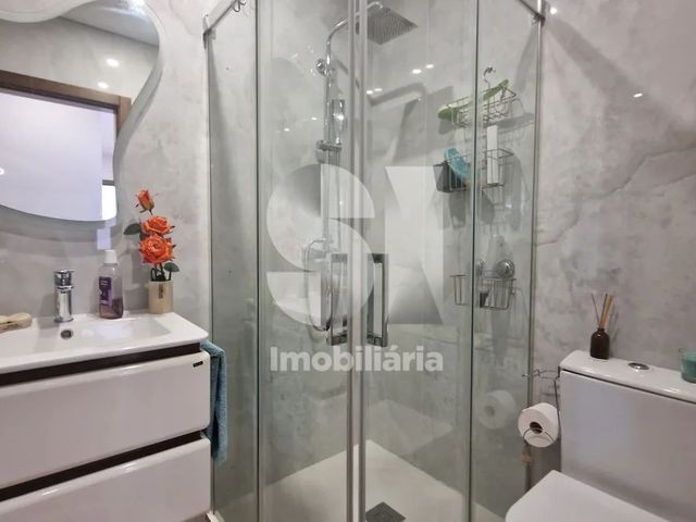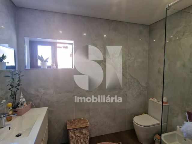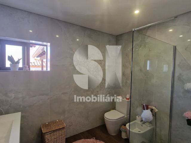 A área privada dispõe de três quartos bem distribuídos, apoiados por duas casas de banho completas, ambas com base de duche e resguardo, garantindo conforto e funcionalidade no dia a dia.