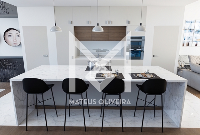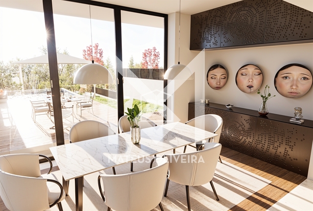 Habitações com área bruta de privativa de 230,00m2, onde se destacam – no piso superior - 3 quartos todos suites, sendo que um deles é uma ‘master’ suite com um closet enorme. Este mesmo quarto tem uma varanda exclusiva e os outros dois quartos varanda partilhada; no rés-do-chão temos um enorme ‘open space’ com a cozinha ao centro, de um lado a sala de estar – aberta para um jardim – e do outro lado a sala de jantar – aberta para outro jardim – e ainda uma instalação sanitária de serviço e uma área de lavandaria e despensa.