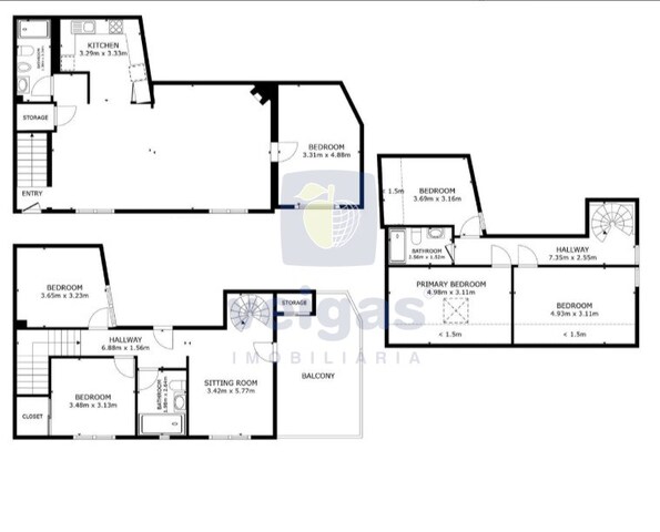 - Sótão com 3 divisões com janela, corredor e casa de banho.