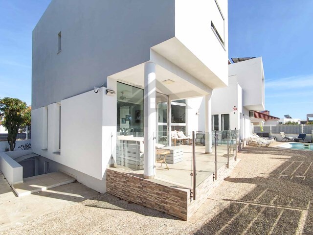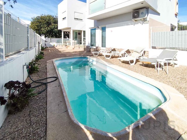 No exterior encontra-se uma piscina privada com zona de lazer e espreguiçadeiras, uma área de churrasco e uma garagem com capacidade para dois carros. A moradia possui ótima exposição solar e localiza-se perto de escolas, comércio, serviços e das belas praias de Portimão.