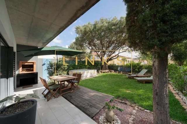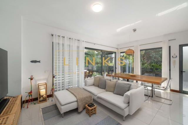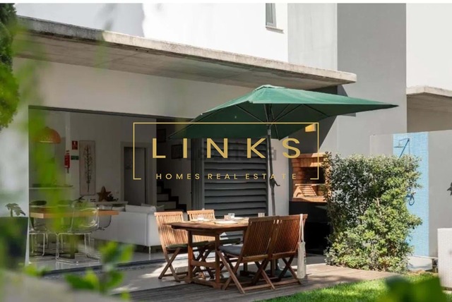 Piso Térreo: Uma cozinha moderna e totalmente equipada funde-se com uma sala de estar ampla, onde o mobiliário de linhas limpas cria um ambiente sofisticado. A transição para o exterior é feita através de grandes portadas de vidro, eliminando as barreiras entre a sala e a natureza. Inclui ainda uma casa de banho social de apoio.