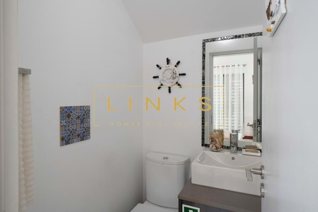 Piso Superior: A zona de descanso é composta por dois quartos luminosos. O quarto principal destaca-se pela decoração temática náutica e acesso a uma vista desafogada, enquanto o segundo quarto oferece um design arrojado e acolhedor.