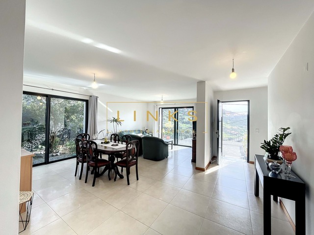 A propriedade apresenta-se com uma ampla garagem, capaz de acomodar até seis veículos, ou servir como espaço multifuncional para lazer e projetos criativos. No piso 1, descubra uma cozinha equipada, uma lavandaria, uma sala de estar com vista panorâmica para as majestosas montanhas e uma luminosa sala de refeições onde poderá aproveitar momentos inesquecíveis com família e amigos. Um espaçoso escritório e uma casa de banho de serviço completam a praticidade e funcionalidade deste andar. No exterior, desfrute de momentos sociais na zona de barbecue e relaxe no sereno jardim.