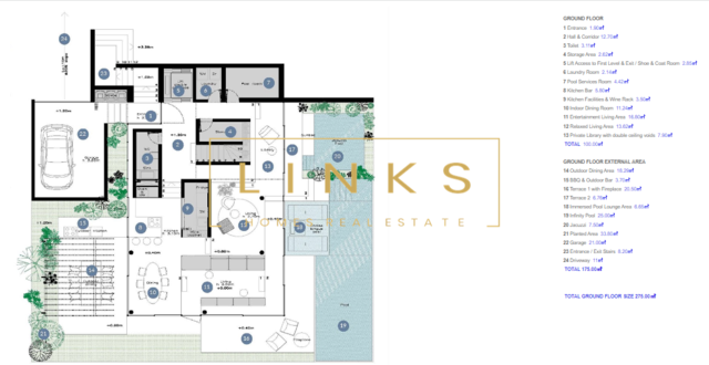 O piso térreo possui zonas comuns que foram cuidadosamente incorporadas propositadamente de forma a permitir o convívio com banhos de sol privativos e piscina. A composição em open space expande os espaços interiores com abertura para um deck exterior, com lareira e zona de refeições exterior projetada com terraços, onde é possível degustar churrasco, relaxar desfrutando da piscina com borda infinita ou jacuzzi. Saboreie a sua bebida favorita em seu bar e sinta o tempo ter a sensação de infinito.