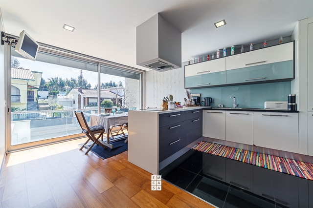 - Ao nível do rés-do-chão, encontra-se uma cozinha totalmente equipada com eletrodomésticos de qualidade das marcas Bosch (placa, forno, exaustor, micro-ondas e máquina de lavar loiça) e Samsung (frigorífico), pensada para proporcionar funcionalidade no dia a dia;