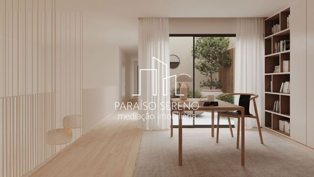 Imóvel com luz natural abundante devido às suas amplas janelas em vidro duplo e estores elétricos que garantem privacidade, conforto térmico e acústico.