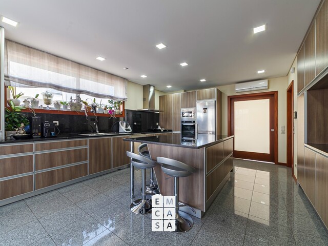 A cozinha em ilha, totalmente equipada, alia design e praticidade, tornando cada refeição num prazer e cada rotina numa experiência mais fluida;