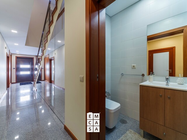 No piso inferior encontra ainda uma casa de banho de apoio, ideal para receber visitas com total comodidade;